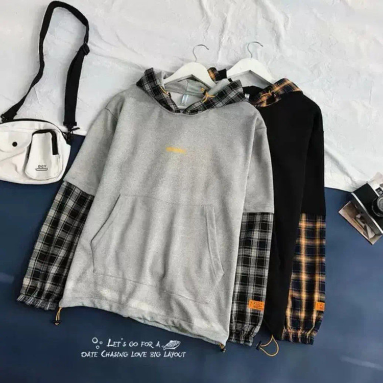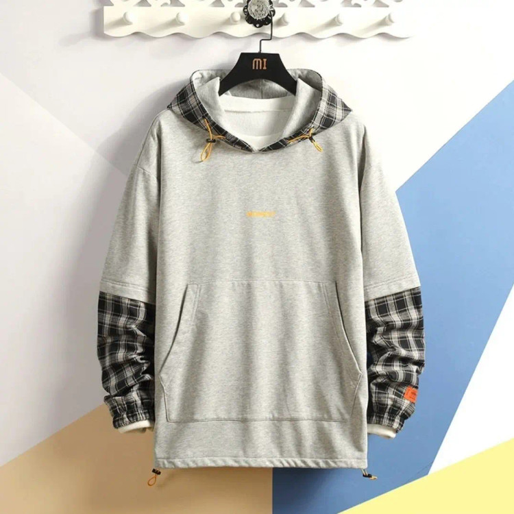 هودی زنانه آستین چهارخونه اسپرت کیفیت عالی رنگبندی : طوسی و شکلاتی فری سایز تا 46