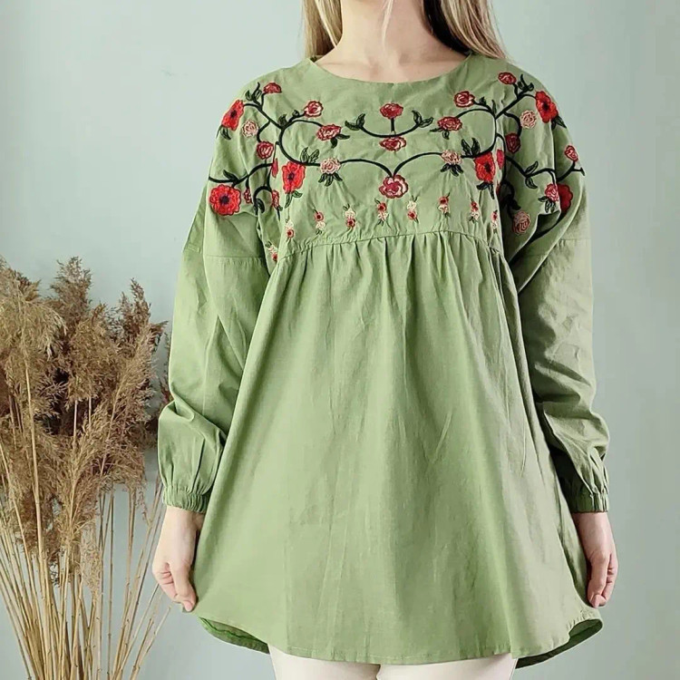 تونیک زنانه گلدوزی 😍 رنگبندی متنوع سایز بندی 38 تا 48 سایز ایکس لارج دور سینه 106 قد 80 دور باسن 122 قد آستین از یقه 67 سایز دو ایکس لارج دور سینه 112 قد 80 دور باسن 130 قد آستین از یقه 69