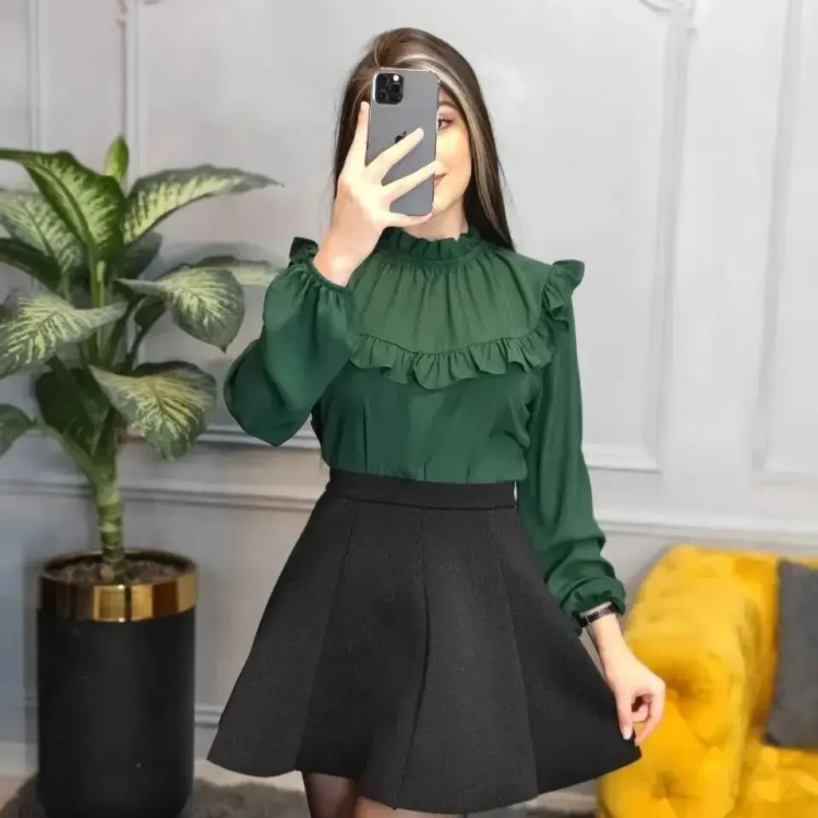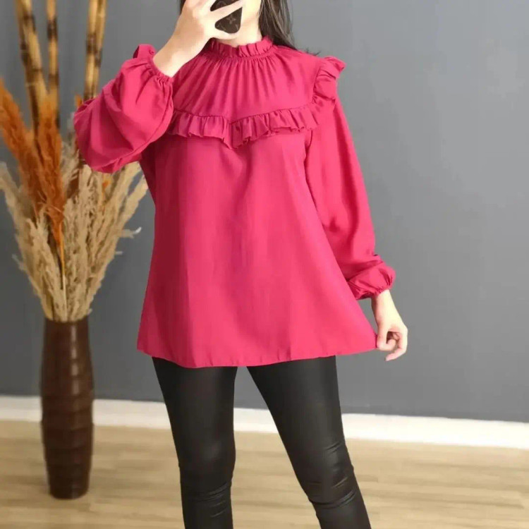 شومیز یقه کش چیندار ☑️جنس کرپ حریر 📐📏سایزبندی 38 تا 48 قد شومیز 70 سانتی متر 🎨رنگبندی بسیار متنوعه و امکان بارگذاری همه رنگ ها نیست سفید ،مشکی، سبز، یشمی، قرمز، آبی نفتی، گوشتی و....
