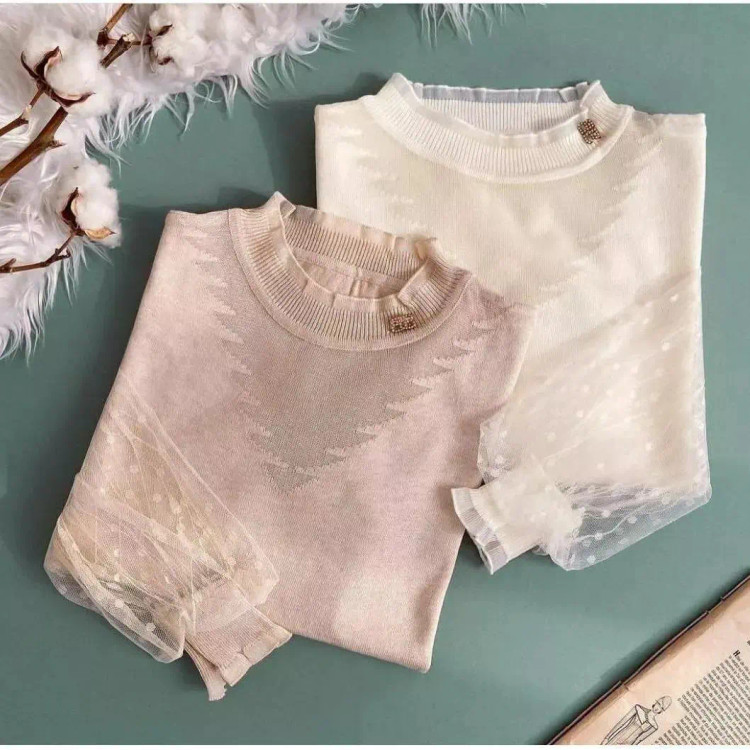 بافت پرنسسی آستین تور😍 فوق العاده ناز و ظریف🤗 مناسب دورهمی ها و مهمونی های پاییز 🍁 جنس: بافت کریستالی رنگبندی: سفید و مشکی ،کرم ☑️فری سایز 36 تا 44 دور سینه در حالت عادی 90 با کشسانی 110