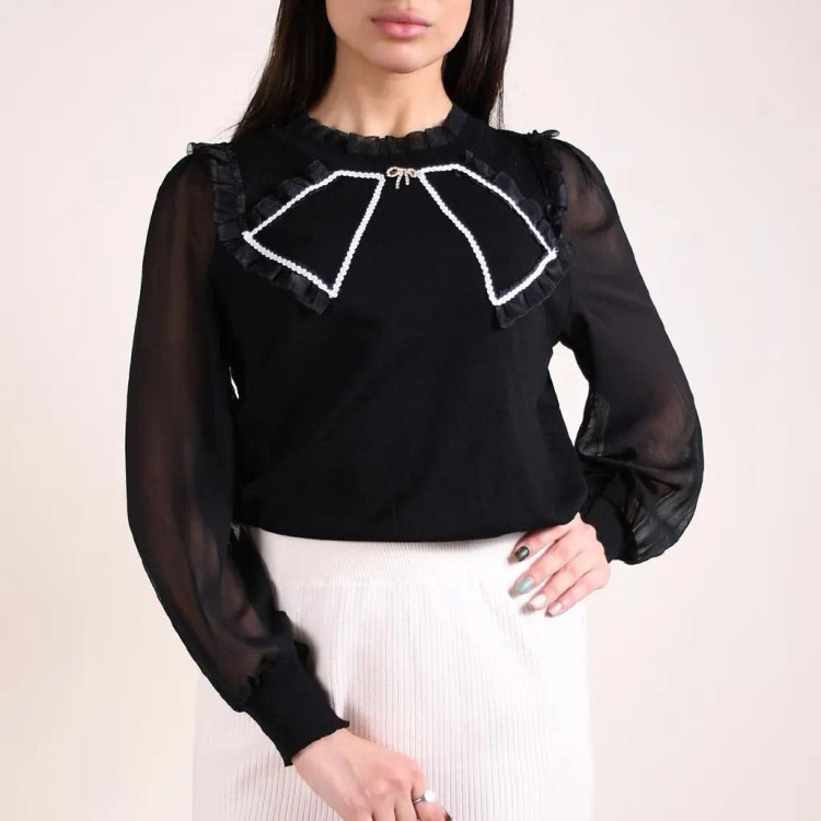 بافت پرنسسی آستین تور😍 فوق العاده ناز و ظریف🤗 مناسب دورهمی ها و مهمونی های پاییز 🍁 جنس: بافت کریستالی رنگبندی: سفید و مشکی ☑️فری سایز 36 تا 44 دور سینه در حالت عادی 90 با کشسانی 110