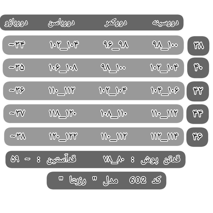 جدول سایزبندی در اسلاید آخر تصاویرهست