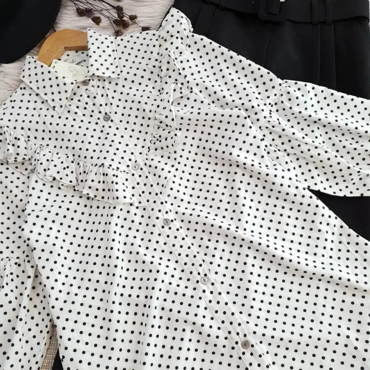 شومیز زنانه جلو چین خالدار عروسکی 😍😍پارچه سوپر سافت درجه یک 👌 بدن نما نیست دگمه دارد مناسب سایز 36 تا 44 قد شومیز 70 سانت