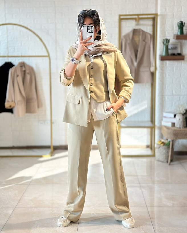 قسمت جلوی لباس لایه کشی شده، داخل آستین آستر دارد