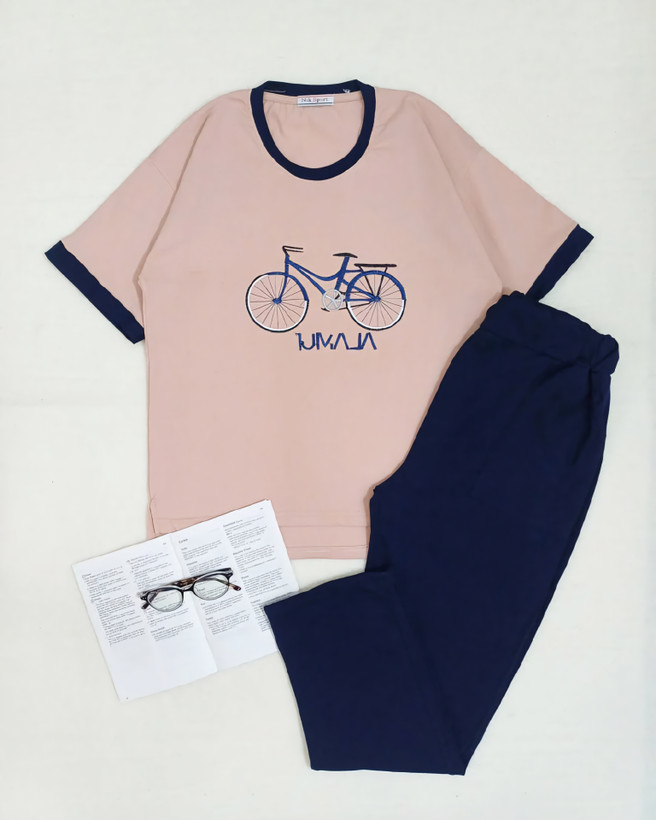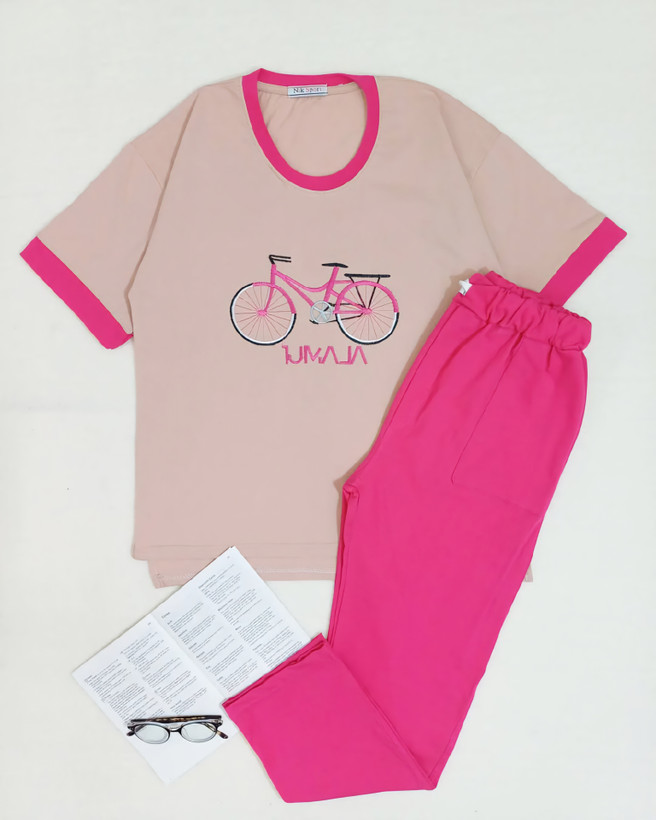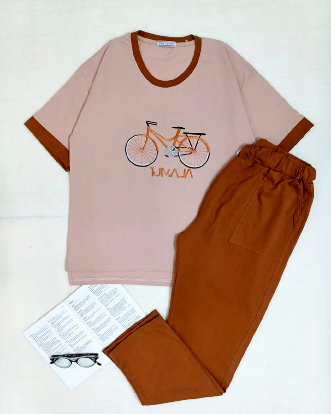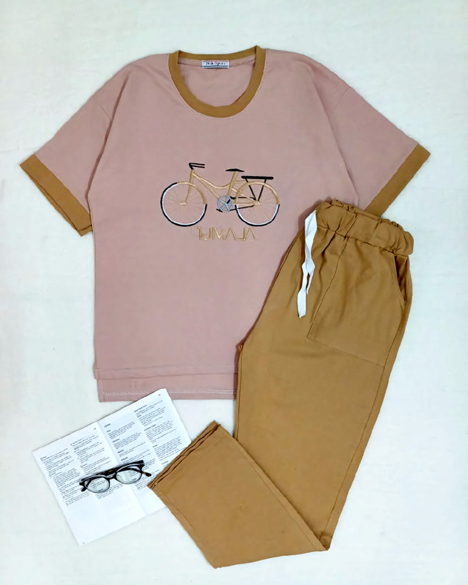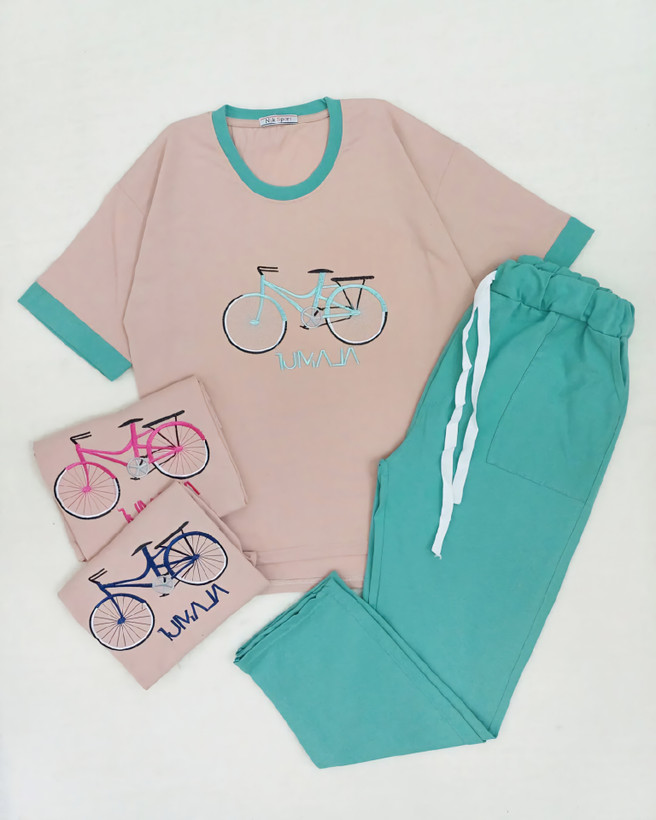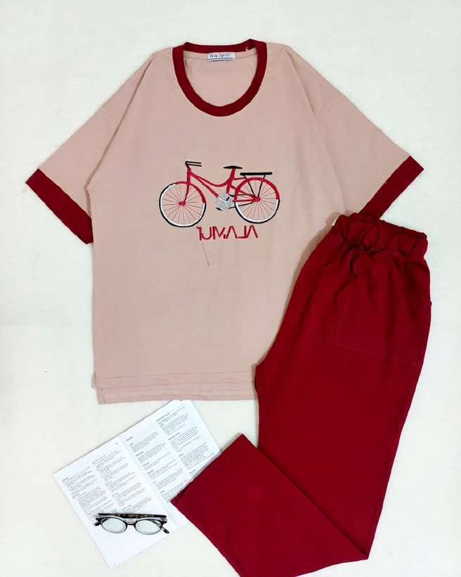 ست تیشرت شلوار نخ پنبه زنانه گلدوزی دوچرخه