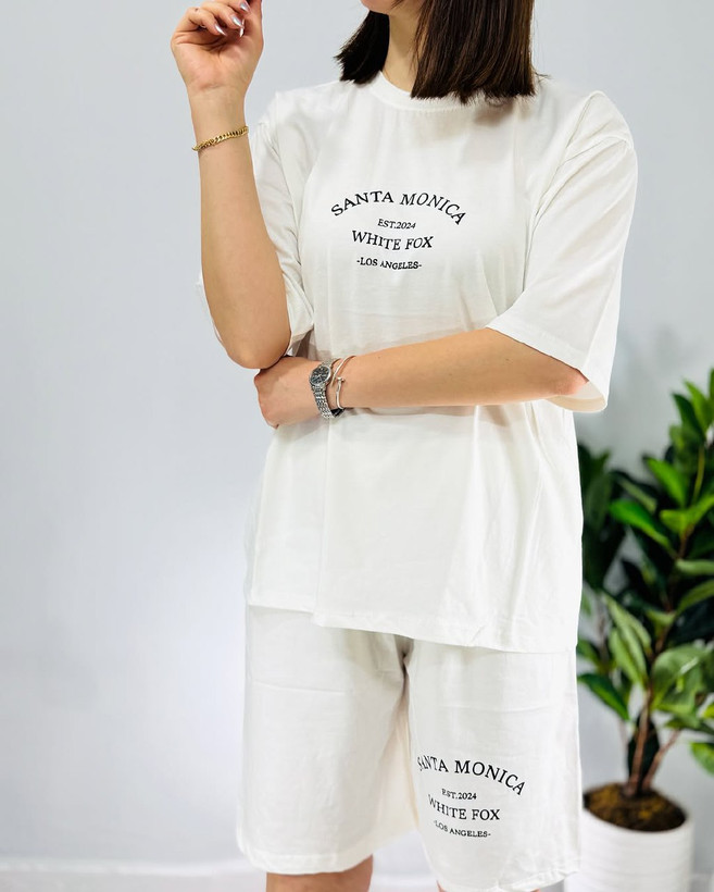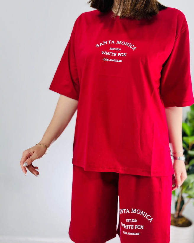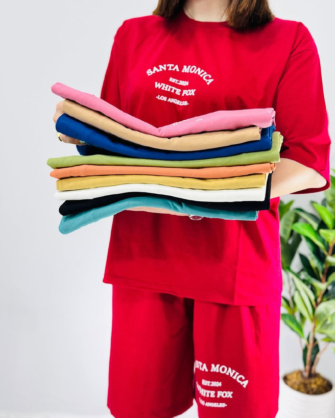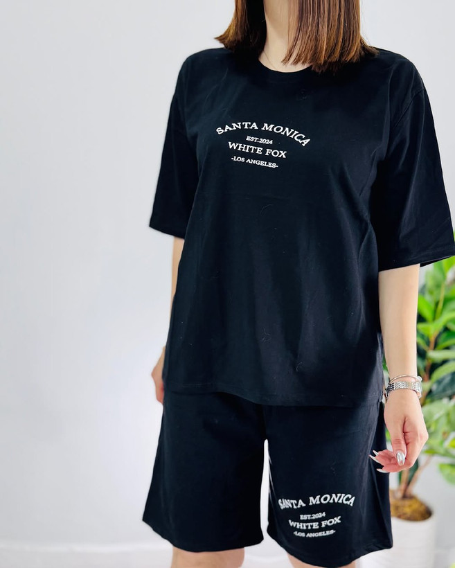 ستدتیشرت باکسی و شلوارک زنانه نخی