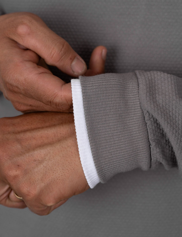 بلوز مردانه با طراحی ساده و خوش دوخت، انتخابی کاربردی برای روزهای سرد پاییز و زمستان است، پارچه بیسکوئیتی درجه این مدل علاوه بر راحتی، بافتی خاص و شیک دارد که جلوه ای متفاوت به لباس می بخشد. لوگوی گلدوزی شده روی سینه نیز هویتی مینیمال و اصیل به آن اضافه کرده است.