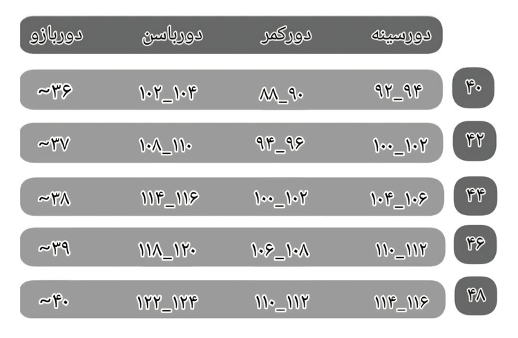 سایزبندی: ۴۰، ۴۲، ۴۴، ۴۶، ۴۸