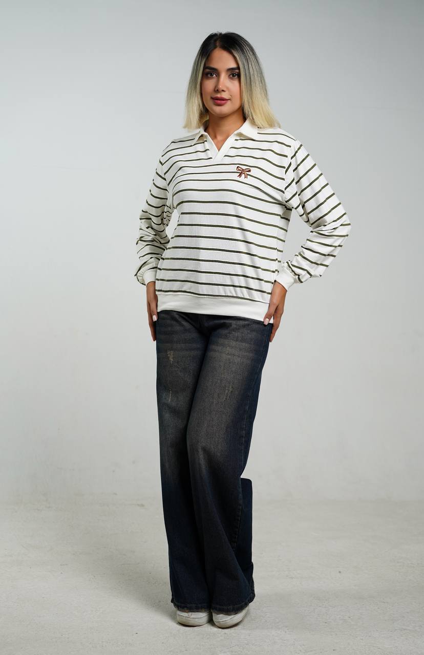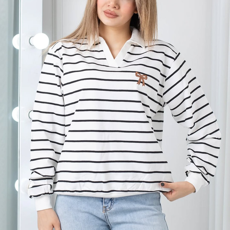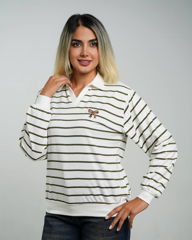 بلوز زنانه راه راه یقه شکاری