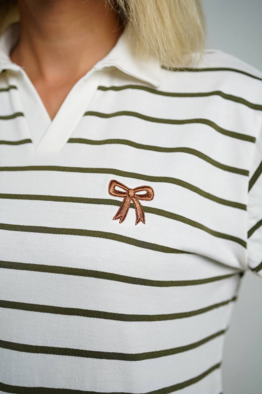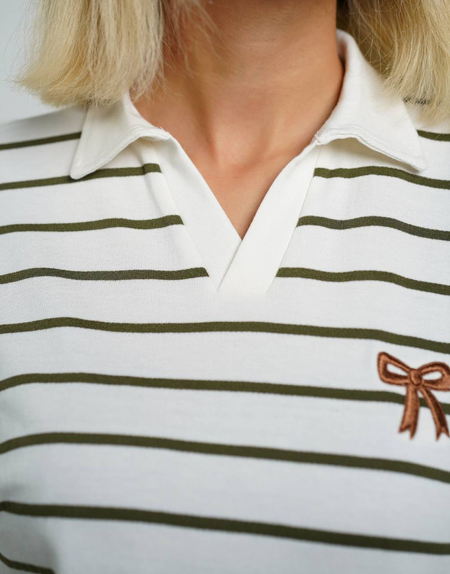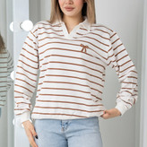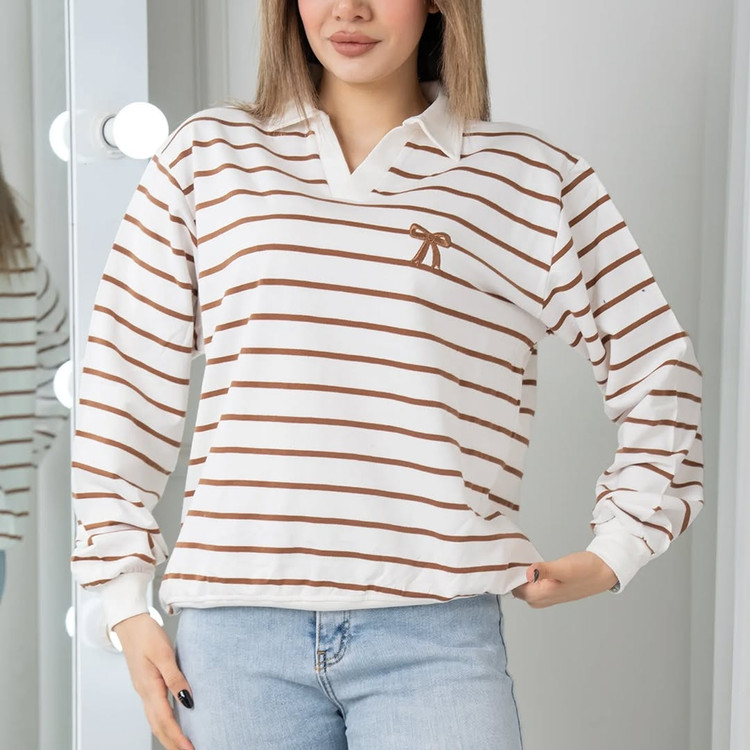 بلوز زنانه دورس یقه دار راه راه گلدوزی
