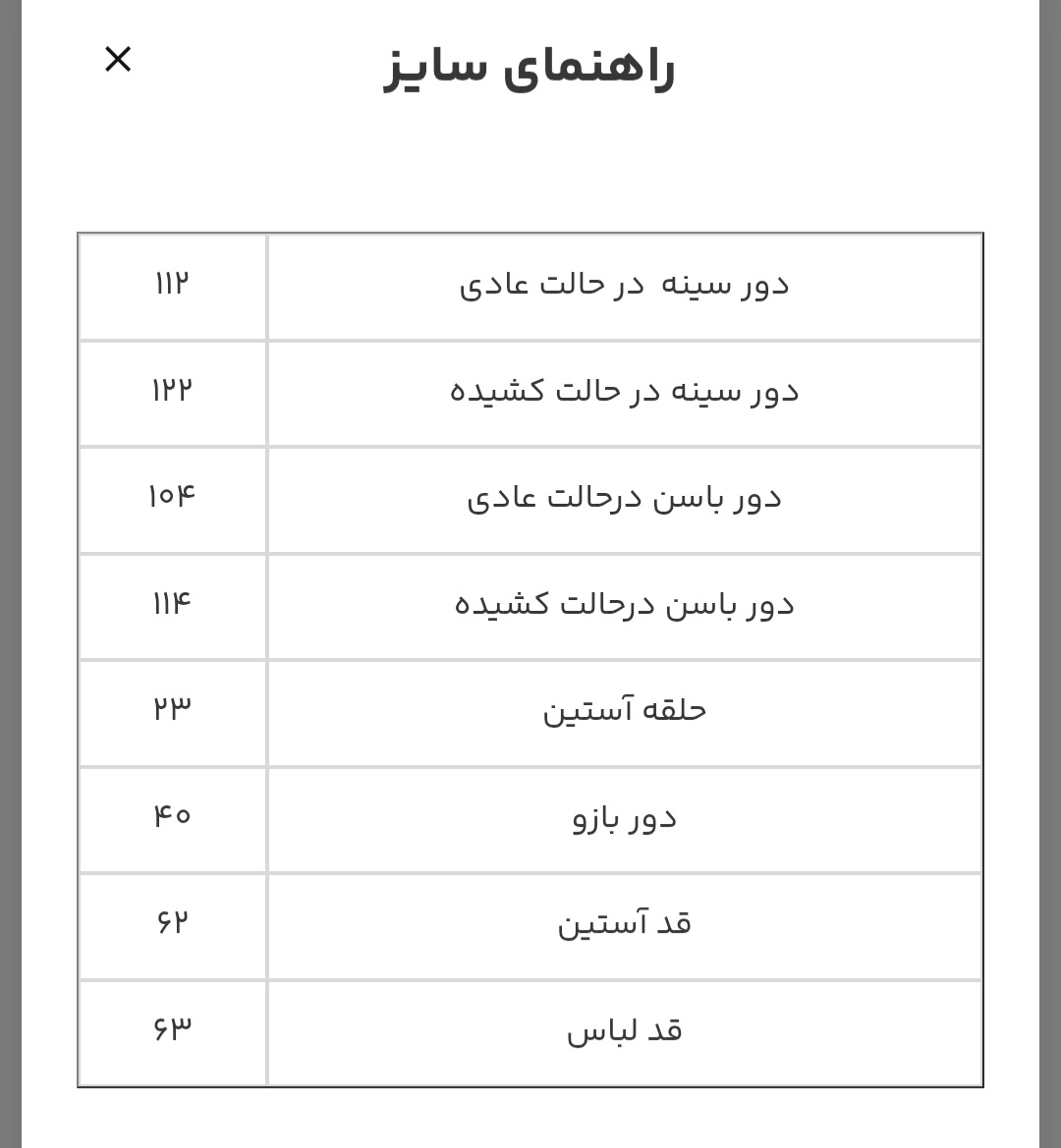 🔴عرض سینه: ۵۷ ، قد لباس ۶۳