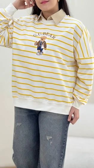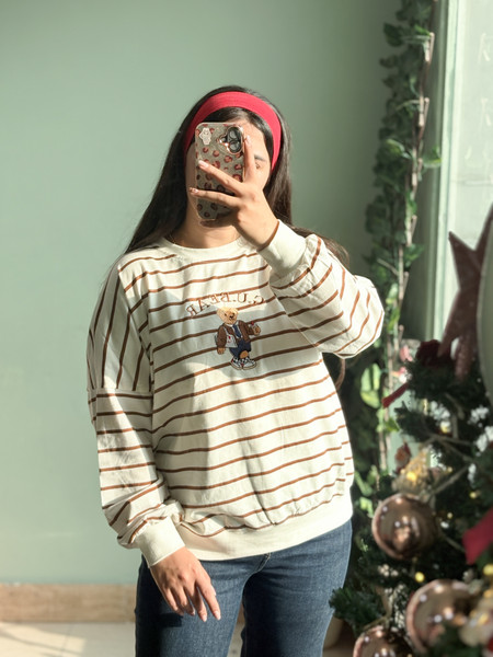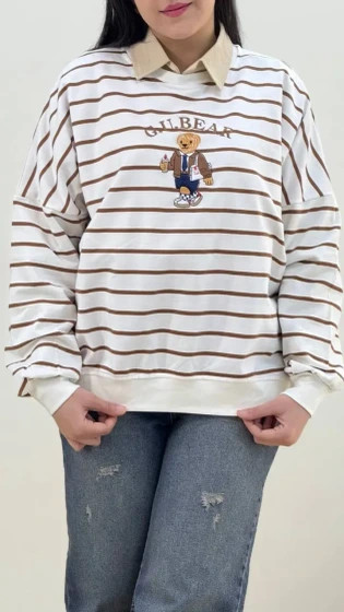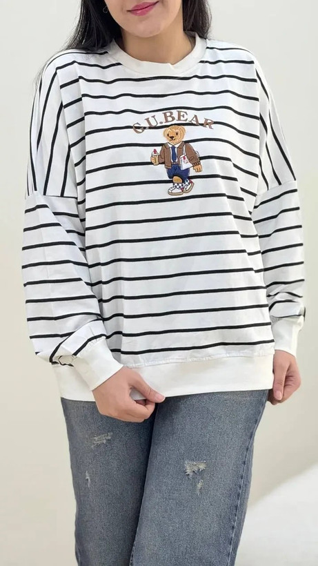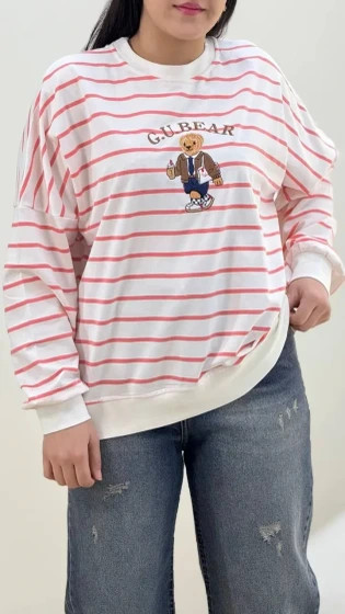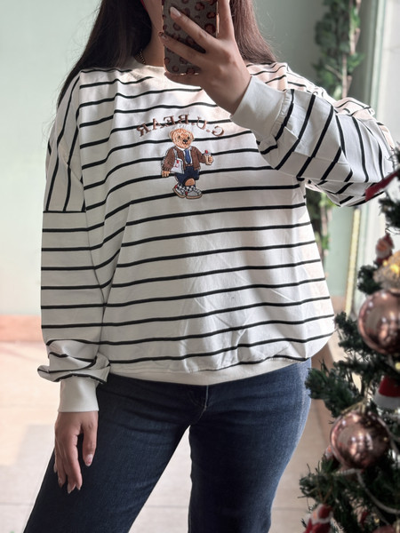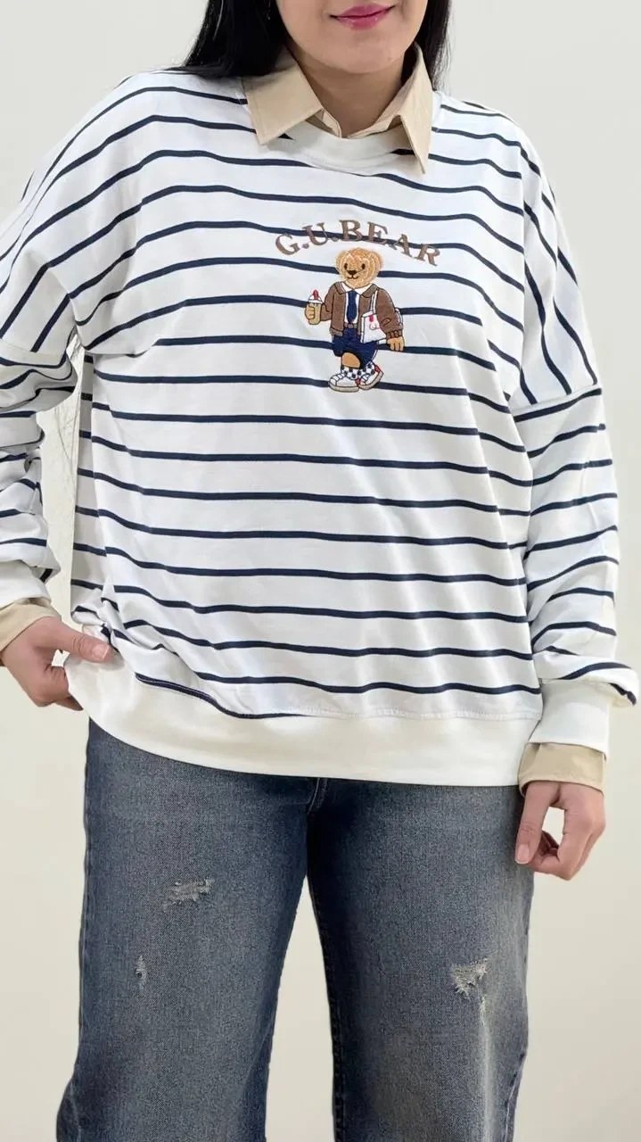 بلوز زنانه دورس یقه گرد راه راه تدی
