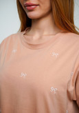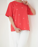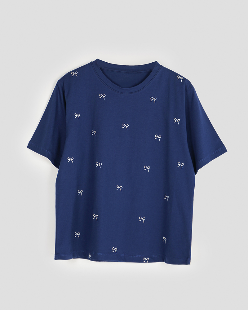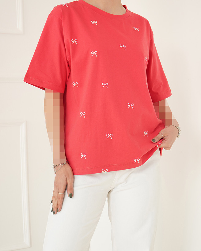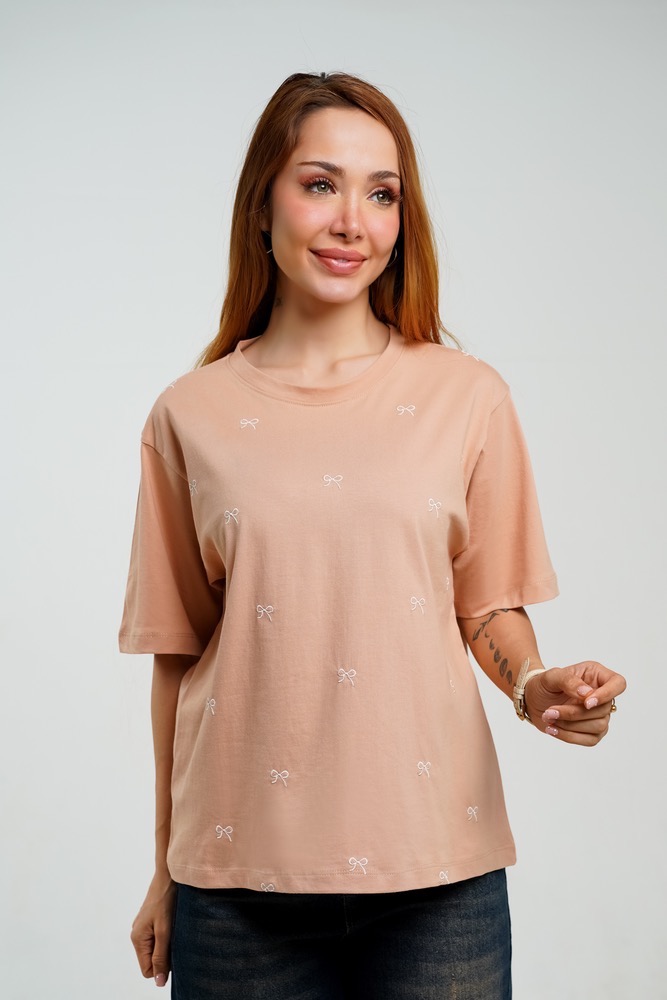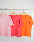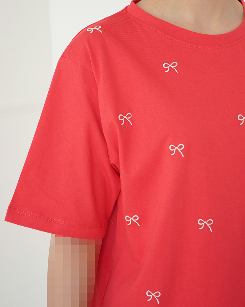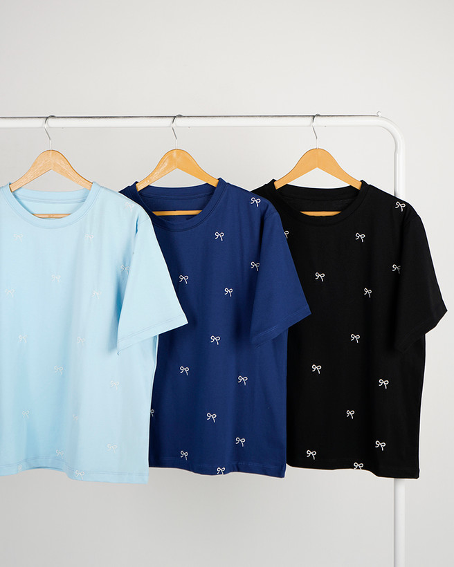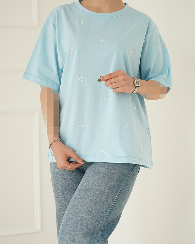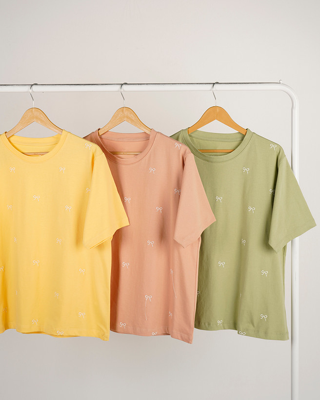 تیشرت یقه گرد و طرح های روی تیشرت، گلدوزی هستند