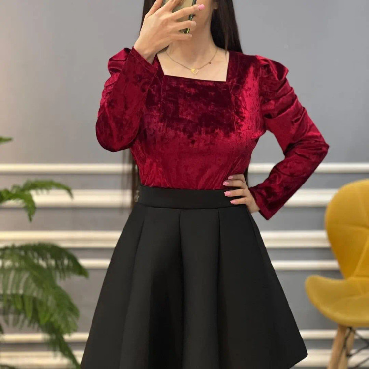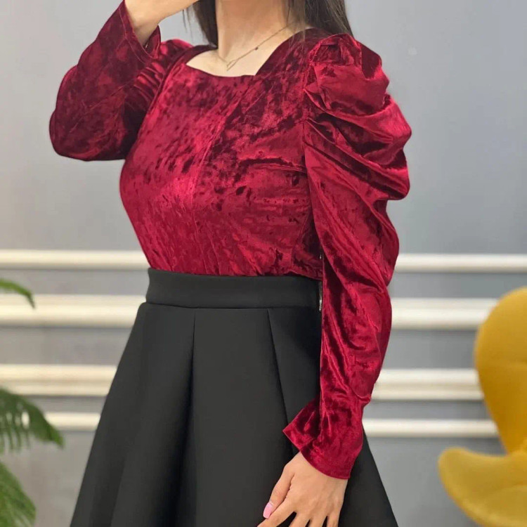 شومیز مخمل کشی آستین پفی تن خور بسیار جذاب و زیبا رنگبندی : مطابق تصویر مناسب سایز 36 تا 42،44